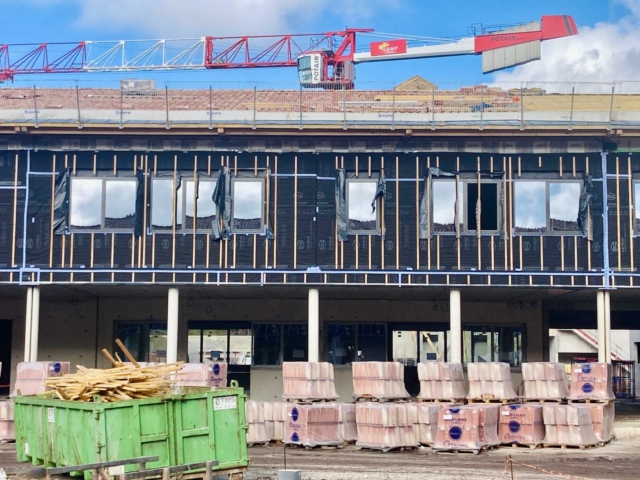 Avancement du chantier du collège avec la pose des menuiseries extérieures